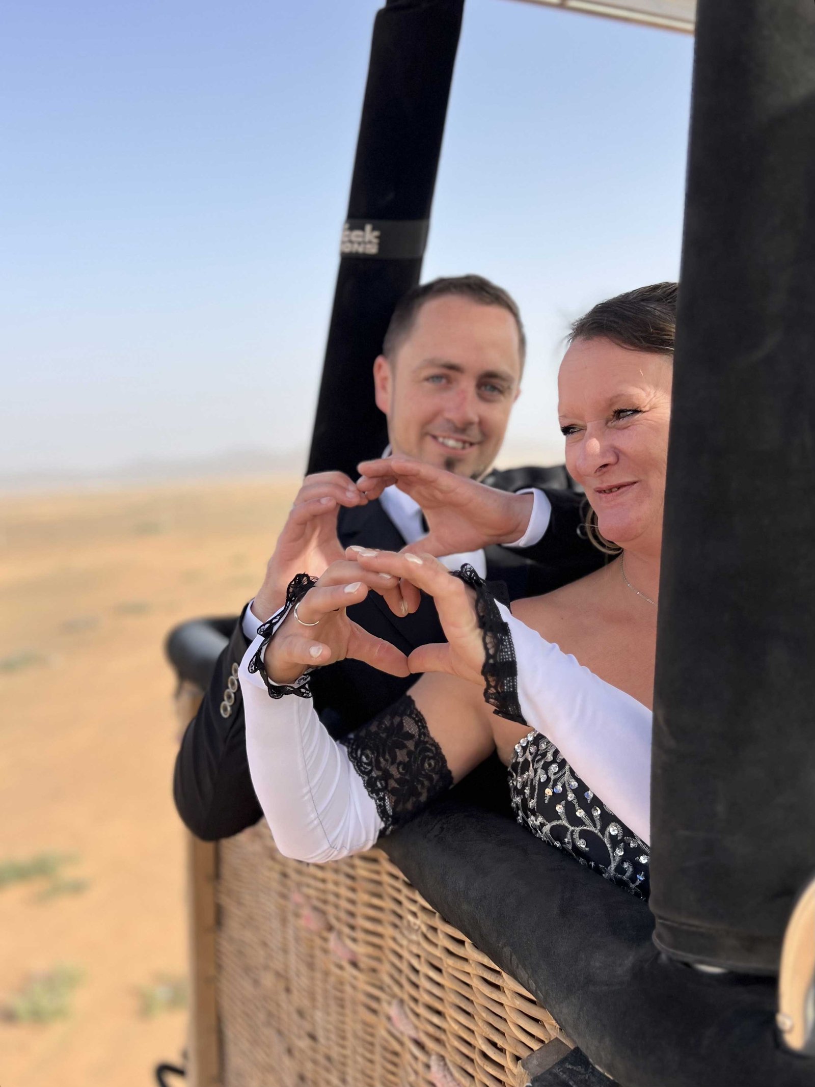 Step into the basket for a flight lasting approximately 60 minutes. During the journey, a wedding officiant—or a person of your choice—will lead the ceremony and guide you through the exchange of vows.